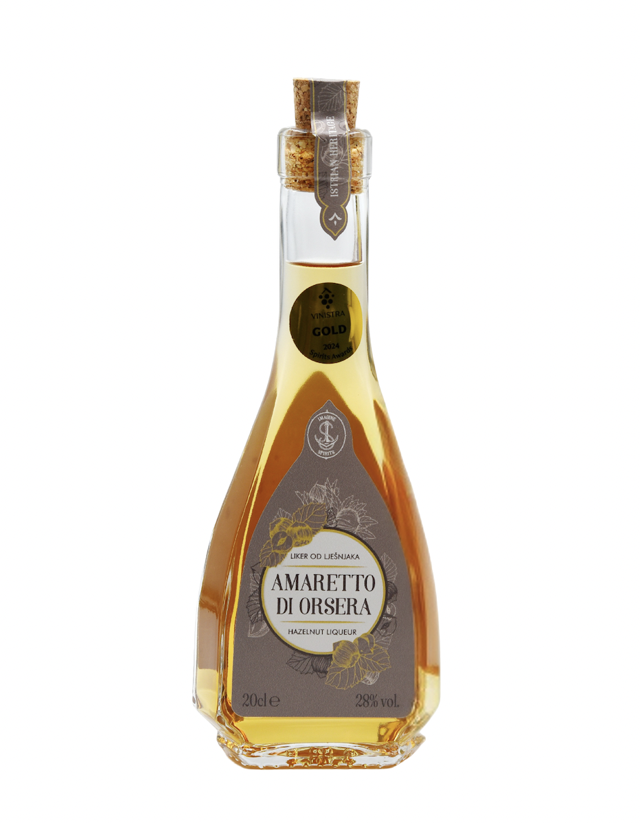 Izvanredni Amaretto od lješnjaka, inspiriran tradicionalnim vrsarskim/Oresara amarettima. Za razliku od klasičnog recepta na bazi badema, naša jedinstvena interpretacija Amaretta donosi bogat, orašast okus kao posvetu prekrasnoj regiji Vrsara.
